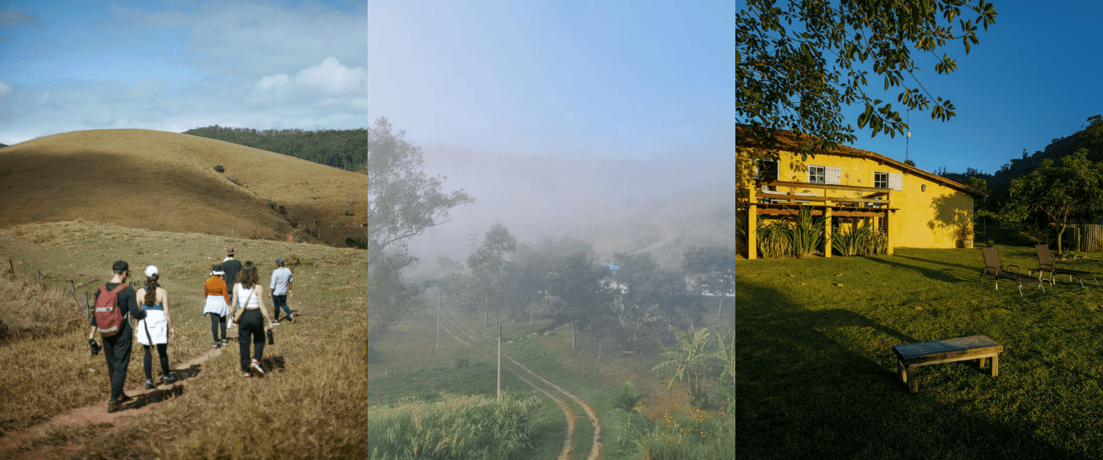 Atualmente o sítio tem três casas para hospedagem, todas muito aconchegantes e charmosas; para casais, grupos de amigos e viajantes que buscam um ambiente tranquilo para se conectarem com o interior.